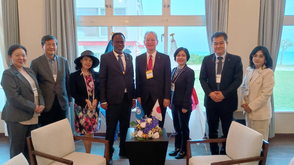 Kumejima, Okinawa — Saga University held a top-level dialogue during the International Academic Summit for the GX Model in Island Regions (IASIR) on Kumejima Island, Okinawa Prefecture, from March 26 to 27, 2026. Participants included four representatives from the United Nations University (UNU), led by President Tshilidzi Marwala and Director Shinobu Yamaguchi, together with senior officials from Saga University, including President Koichi Node, Vice President for International Affairs Maiko Sakamoto, and Director of Institute of Ocean Energy Yasuyuki Ikegami.