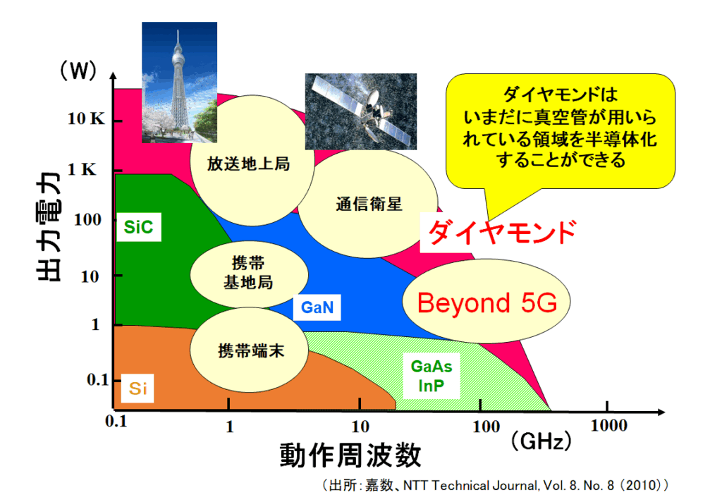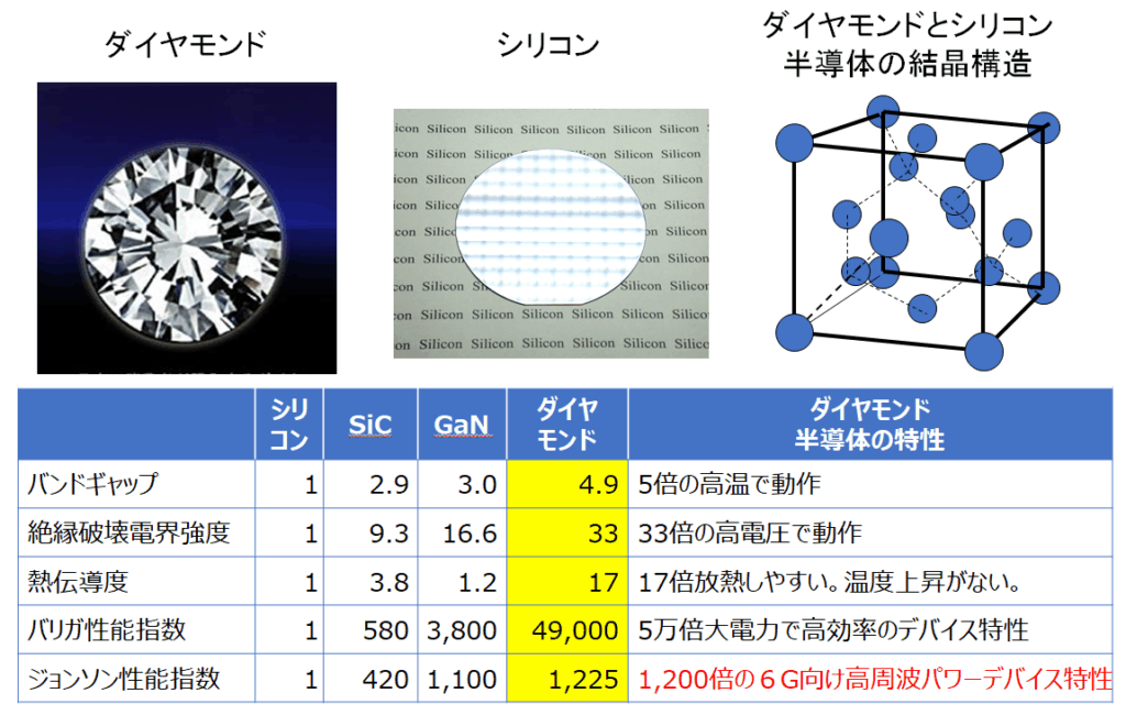 図2 ダイヤモンドの優れた物性から期待されるデバイス性能