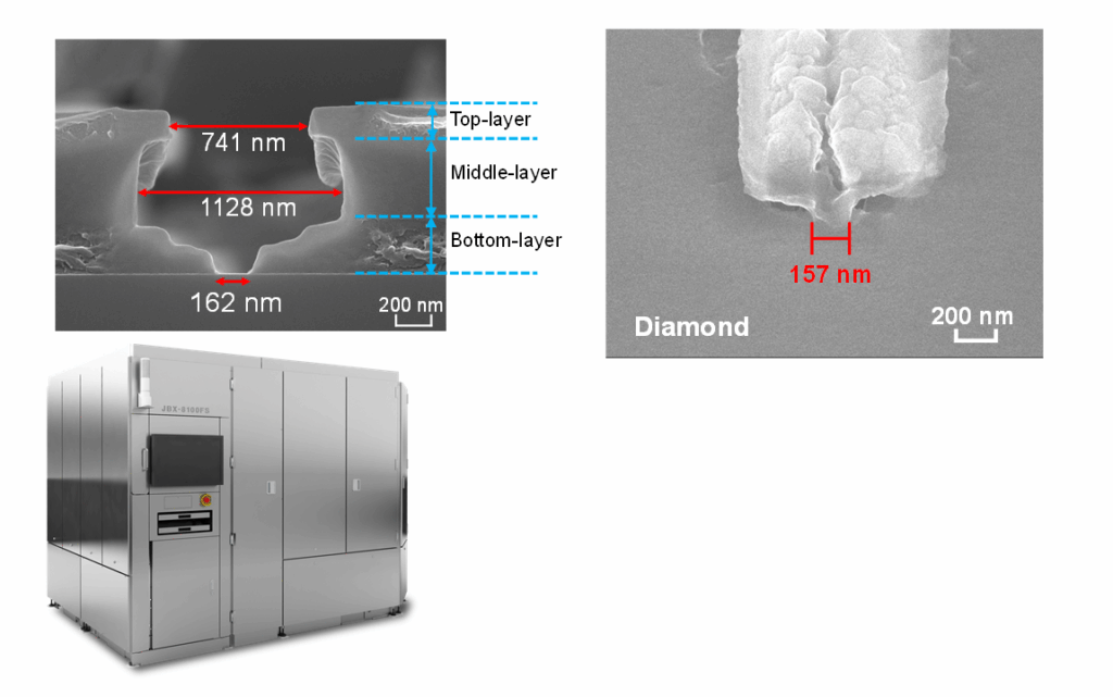 佐賀大学では、電子線描画装置を導入し、ダイヤモンド半導体用の独自技術を開発しました。導入した電子線描画装置は、半導体微細加工の限界に迫る8ナノメートル未満の描画が可能です。