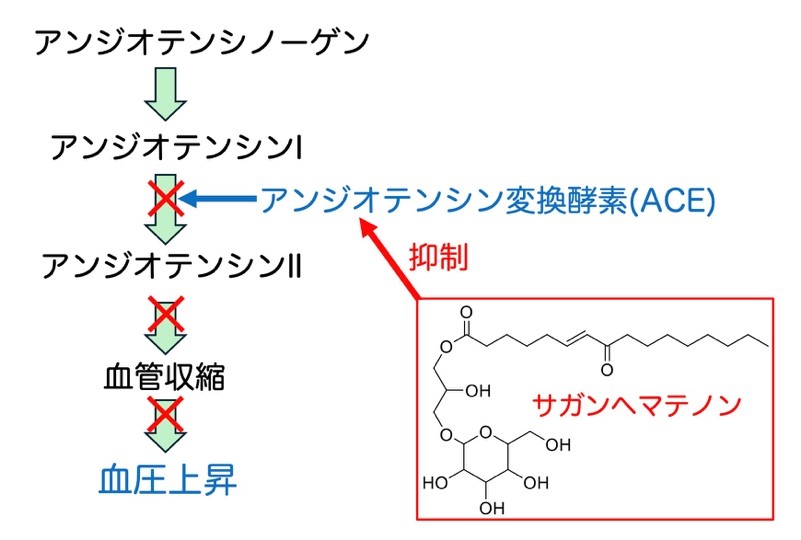 図2. サガンヘマテノンによるACEの抑制による血圧降下へ期待
