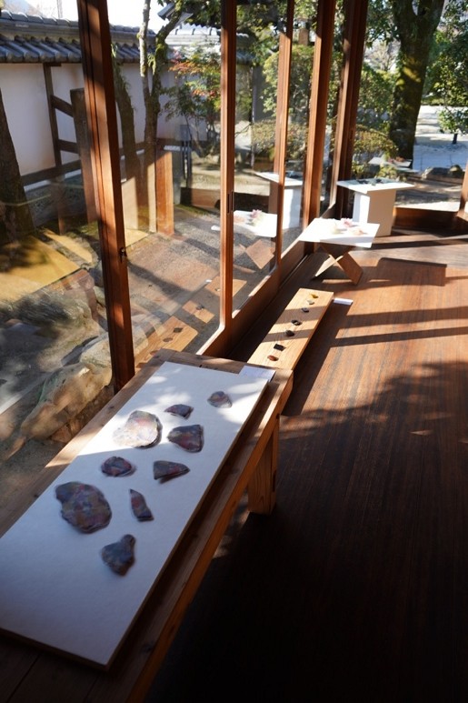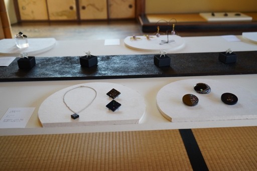佐賀大学芸術地域デザイン学部の工芸分野(セラミック/漆・木工/染色)に所属する学生と教員による、「身につける工芸(ジュエリー)」をテーマとした展覧会。会場は佐賀市歴史民俗館の一つである旧古賀家に併設された茶室。静かな庭に囲まれた落ち着いた空間で工芸表現の新しい可能性が展開されました。