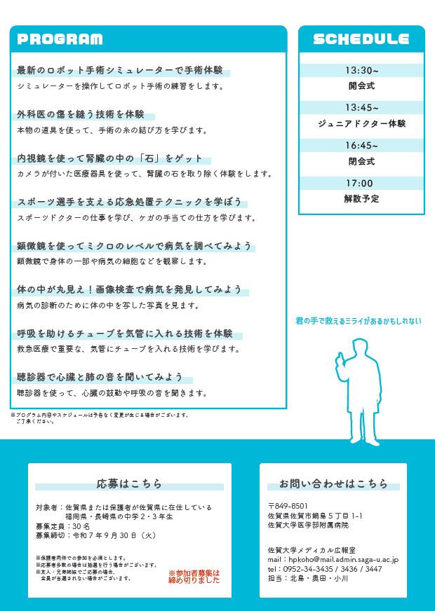中学生対象「SAGAジュニアドクター体験2025」を初開催!