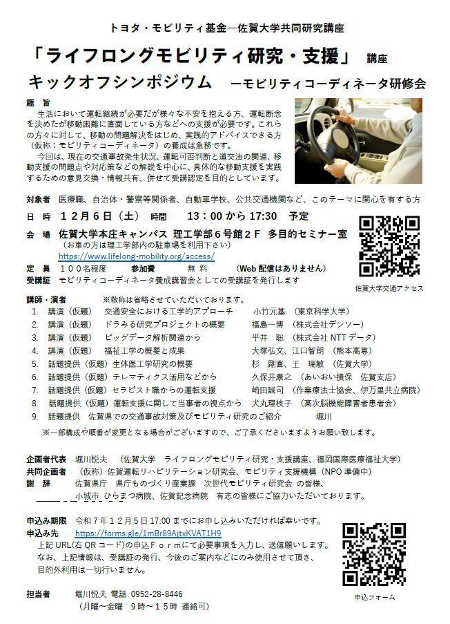 佐賀大学 理工学部 ライフロングモビリティ講座