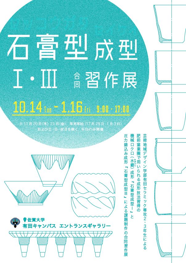芸術地域デザイン学部有田セラミック専攻学生2年生と3年生による合同展覧会を開催します。