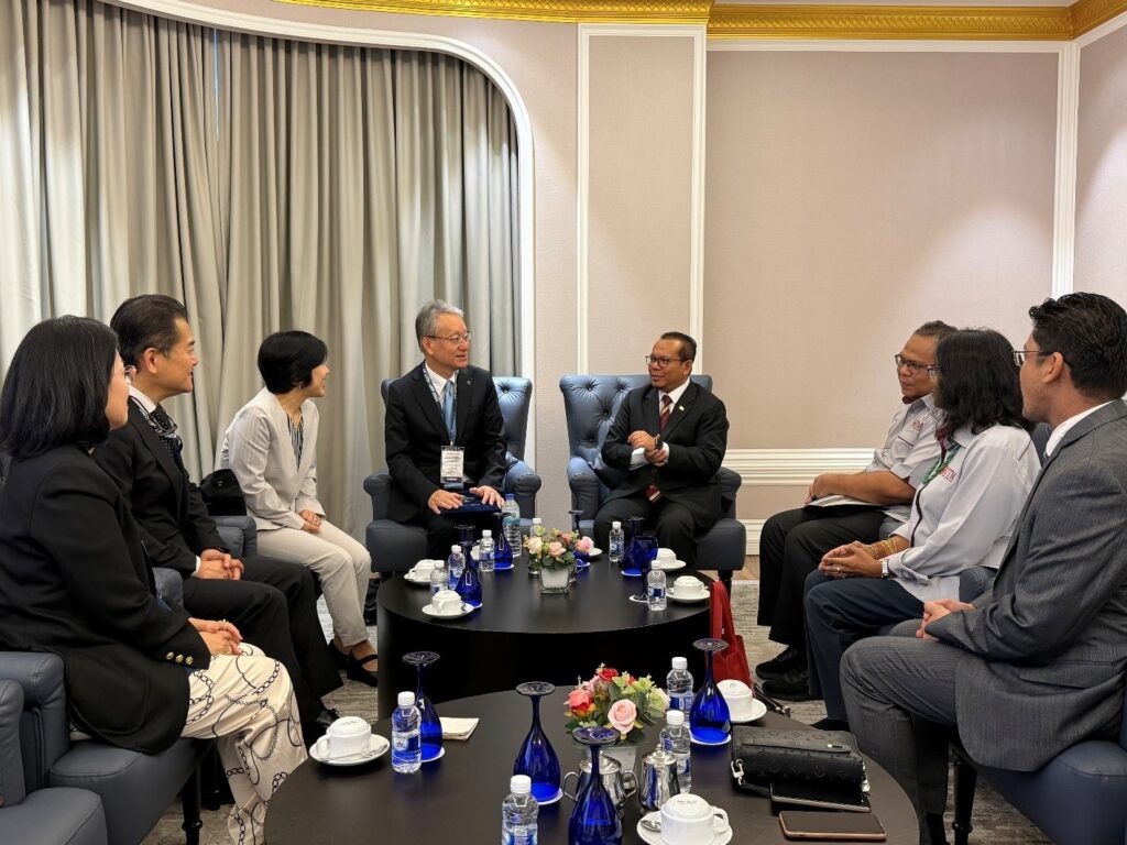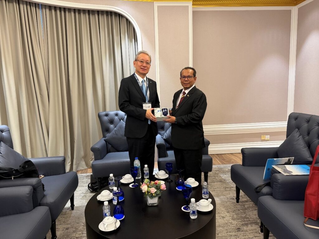 佐賀大学の野出 孝一学長は、2025年10月7日に、マレーシア工科大学(UTM)が主催した「UTM University Presidents Forum 2025」にパネリストとして登壇し、この機会の翌日8日に、UTMのモハメド・シャフリー・ビン・モハメド・ラヒム学長と両大学間の連携強化について意見交換を行うため懇談しました。本懇談には、本学から坂本 麻衣子国際担当副学長および池上 康之海洋エネルギー研究所長らも同席しました。