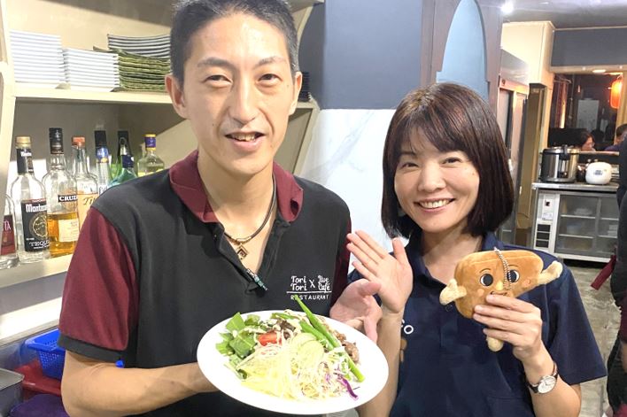 ⑥  Tori Tori Restaurant店頭のタペストリー:レストランスタッフによるメニュー紹介。