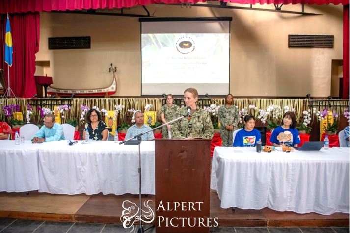① 第32回 Mechesil Belau Conference「Health (Mental, Spiritual, and Physical Health)」セッションにて:政府関係者、海軍医療チーム、Peace Winds Japan らと共に健康づくりの取り組みを共有。
