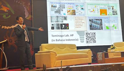 化学部門の冨永 昌人 教授および、理工学専攻バイオ・マテリアルエンジニアリングコース博士後期課程2年のPrapti Ira Kumalasariさんが、2025年9月11日(木)にインドネシア・カリマンタン工科大学において、以下の講演タイトルで基調講演および招待講演をそれぞれ行いました。