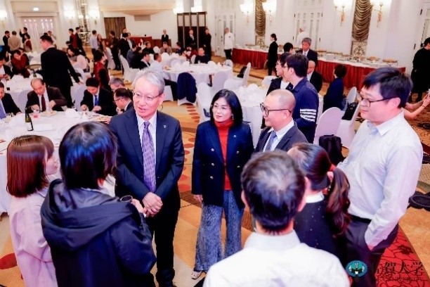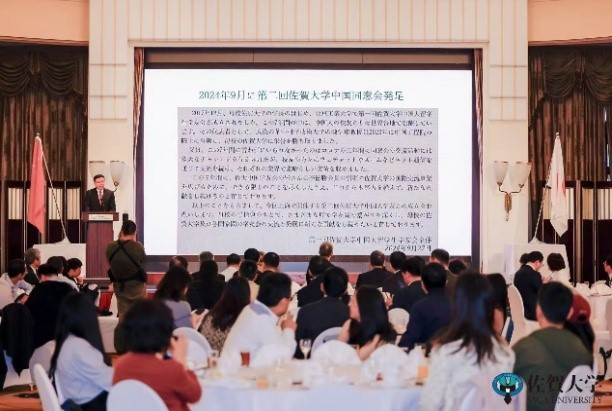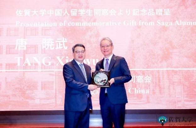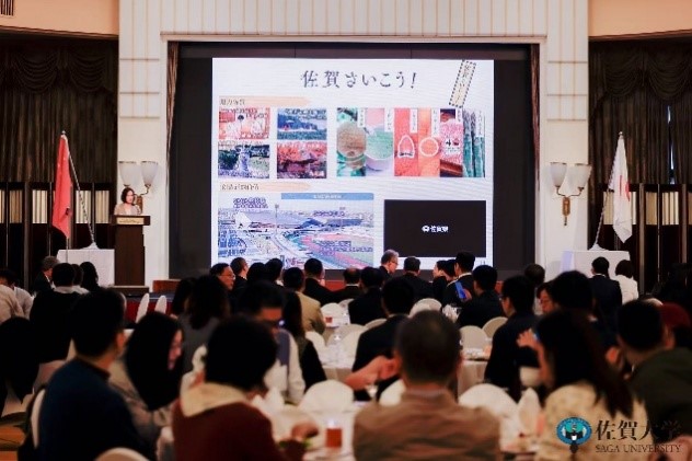 共同会長の丁剣氏が佐賀大学中国同窓会を代表し、同窓会活動紹介と挨拶を行いました。丁氏は母校や同窓生間の相互連携を一層深める意欲を表明しました。会場では長年の友人や恩師との久々の再会に、会場は終始和やかな交流の輪に包まれました。