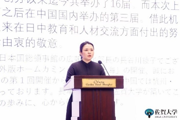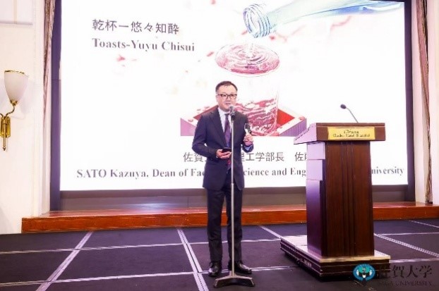 来賓挨拶では、長谷川綾子在上海日本国総領事館広報文化部長、霍春輝遼寧大学副学長、その後、佐藤和也理工学部長による乾杯の挨拶に続き、川本綾子佐賀県地域交流部多文化共生さが推進課副課長、森永裕之上海佐賀県人会会長より祝辞等が寄せられました。
