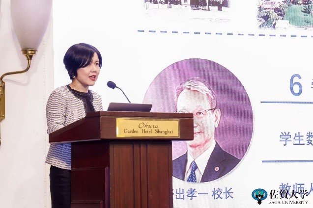 続いて、佐賀大学の紹介として、坂本麻衣子副学長(国際担当・国際交流推進センター長)より「佐賀大学の今とこれから」が紹介され、坂本副学長は、本学の新しい国際交流や特徴ある研究活動、充実した留学生支援体制を紹介し、参加者の関心を引きました。