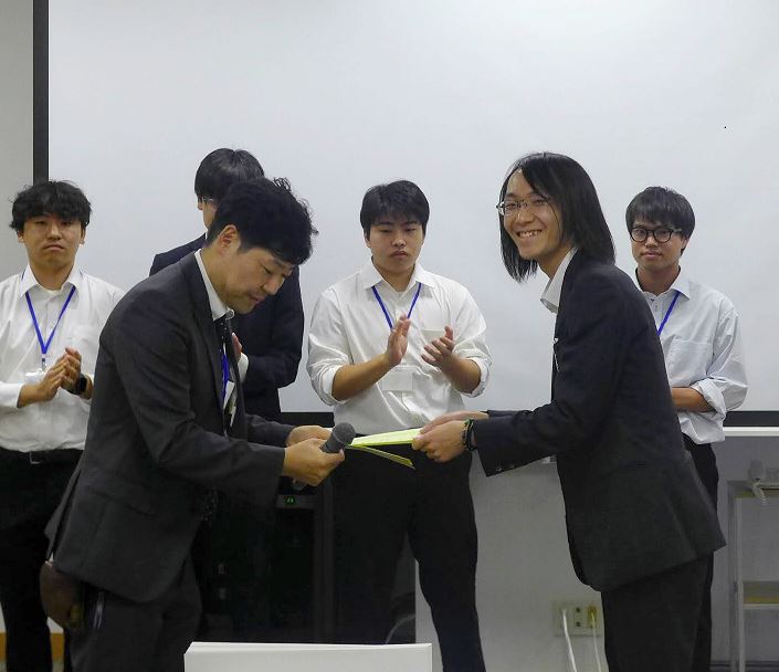 本セミナーでは、優秀な研究発表を行った学生に対して、その功績を称え研究意欲を高めることを目的に、優秀ポスター賞を授与しています。末次さんは、次世代太陽電池材料として期待されるZnTeO中間バンド型太陽電池に関する最新の研究成果を発表し、発表内容とプレゼンテーションが高く評価され、受賞に至りました。