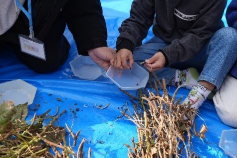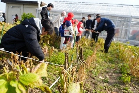 附属幼稚園の園児と大学生が 大豆・小豆の収穫を通して交流しました!