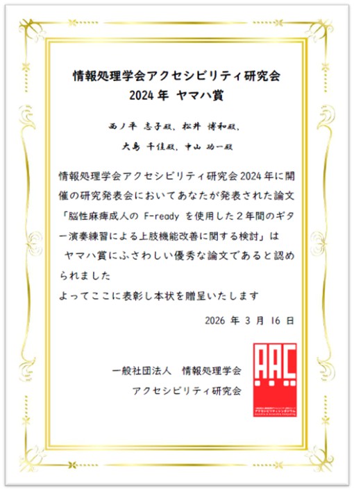 情報処理学会アクセシビリティ研究会 2024年ヤマハ賞を受賞