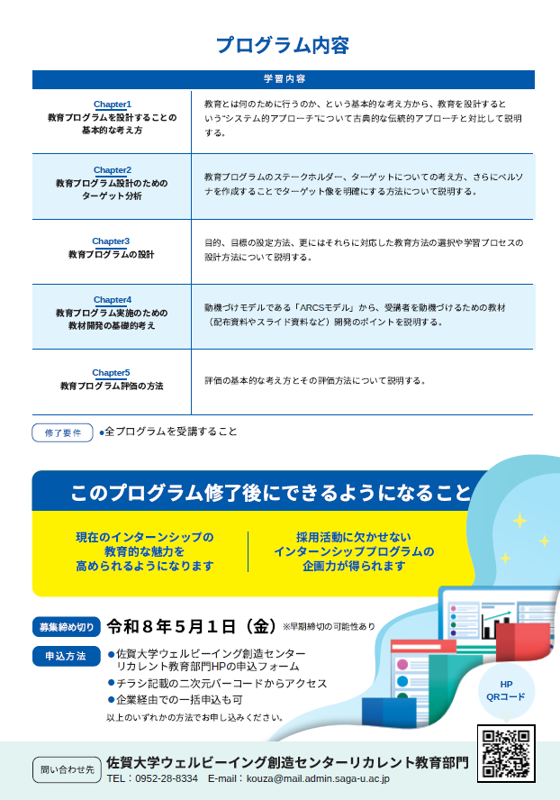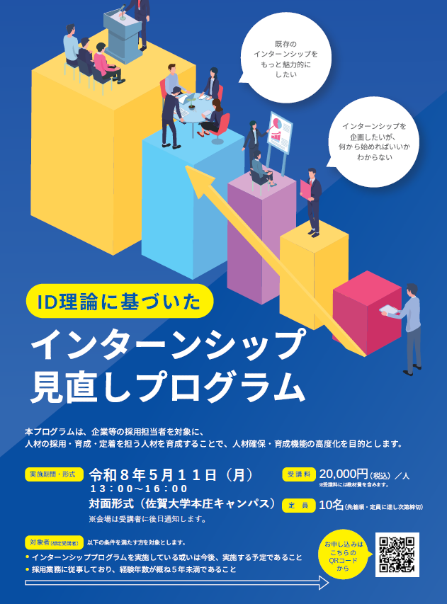 佐賀創生リカレント教育プラットフォーム事業 ID理論に基づいた「インターンシップ見直しプログラム」の開催について